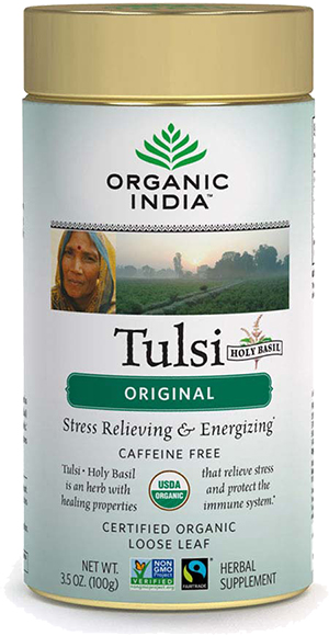 | a | Three sacred varieties of Tulsi with potent restorative powers are blended to create this calming, yet energizing, infusion, offering hints of lemony citrus from Vana, the slightly spicy tones of Krishna, and the calm depth of Rama.