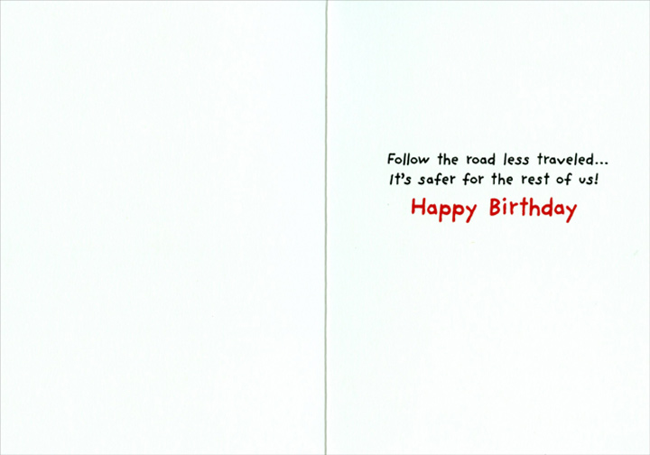 | Inside: | Follow the road less traveled… It's safer for the rest of us! Happy Birthday |