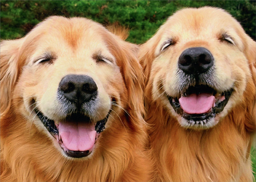 Two Smiling Golden Retrievers Funny Dog Birthday Card