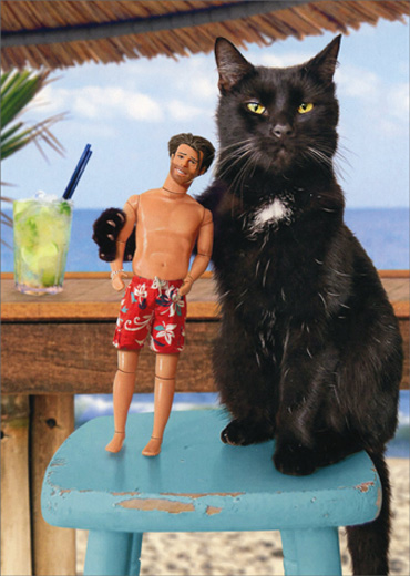 Cat And Doll Friends Humorous / Funny Birthday Card