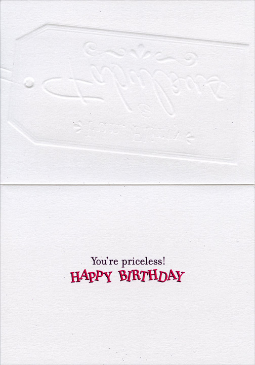 Embossing, pink foil and sparkling glitter create a fun image on the front of this wonderful birthday card from the A*Press line of greeting cards from Avanti. Printed in the USA on shimmering pearlized paper.