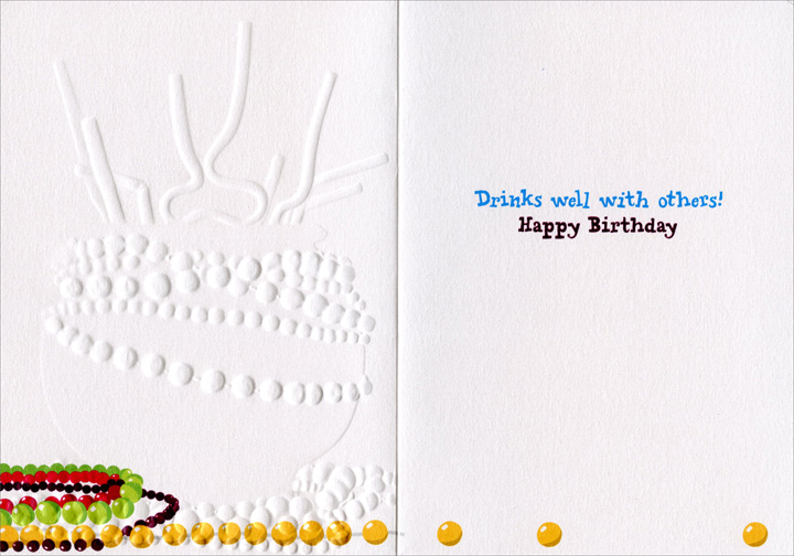 Shimmering pearlized paper, embossed images, and sparkling glitter on the straws, beads, and bowl make this a wonderful birthday card. Printed in USA.