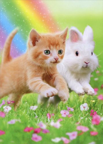 Kitten And Bunny Friends Funny Cat Birthday Card