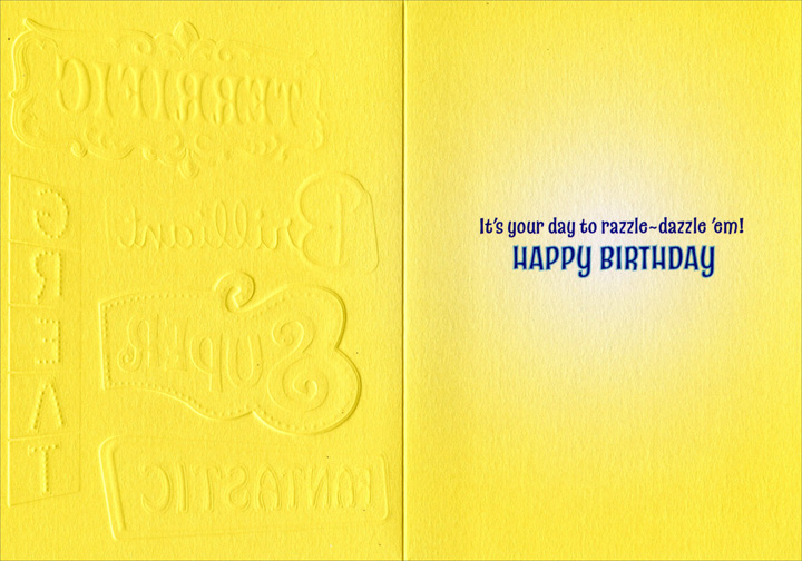 | Inside: | It's your day to razzle~dazzle 'em! Happy Birthday |