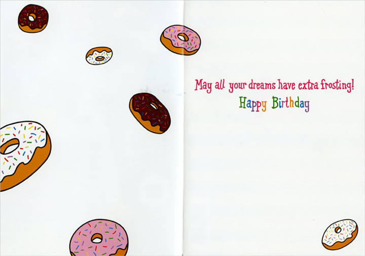 | Inside: | May all your dreams have extra frosting! Happy Birthday |