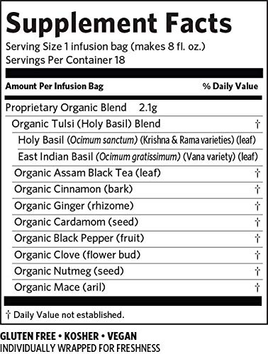 Traditional Indian spices, Black Tea and the benefits of Tulsi make this Masala Chai an exotic experience full of goodness.*