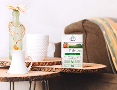 Three sacred varieties of Tulsi with potent restorative powers are blended to create this calming, yet energizing, infusion, offering hints of lemony citrus from Vana, the slightly spicy tones of Krishna, and the calm depth of Rama.