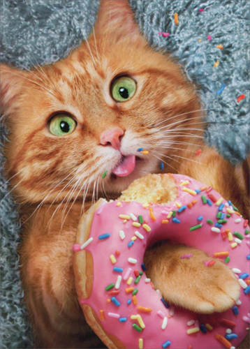 Cat Eating Donut Funny Birthday Card