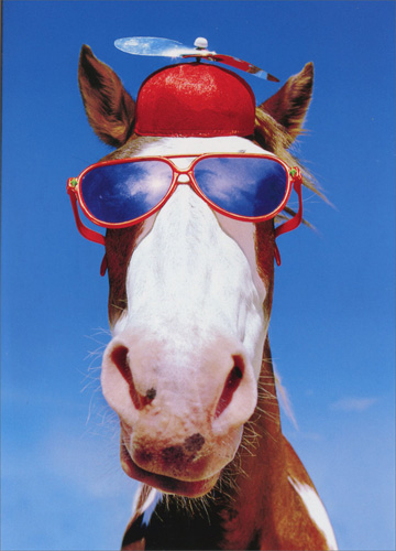 Silly Horse With Hat And Sunglasses Funny Birthday Card