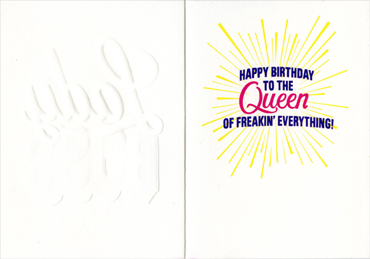 | Inside: | HAPPY BIRTHDAY to the Queen of Freakin' EVERYTHING! |