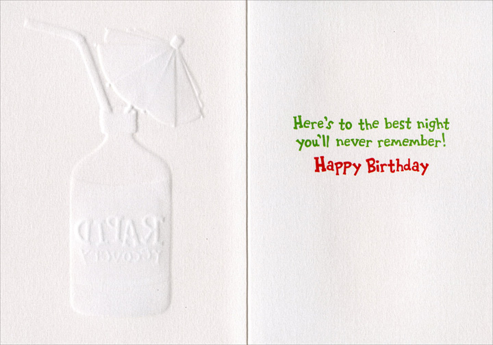 | Inside: | Here's to the best night you'll never remember! Happy Birthday |
