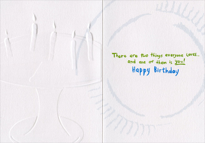 | Inside: | There are two things everyone loves and one of them is you! Happy Birthday |