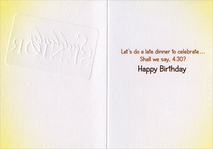 | Inside: | Let's do a late dinner to celebrate… Shall we say, 4:30? Happy Birthday |